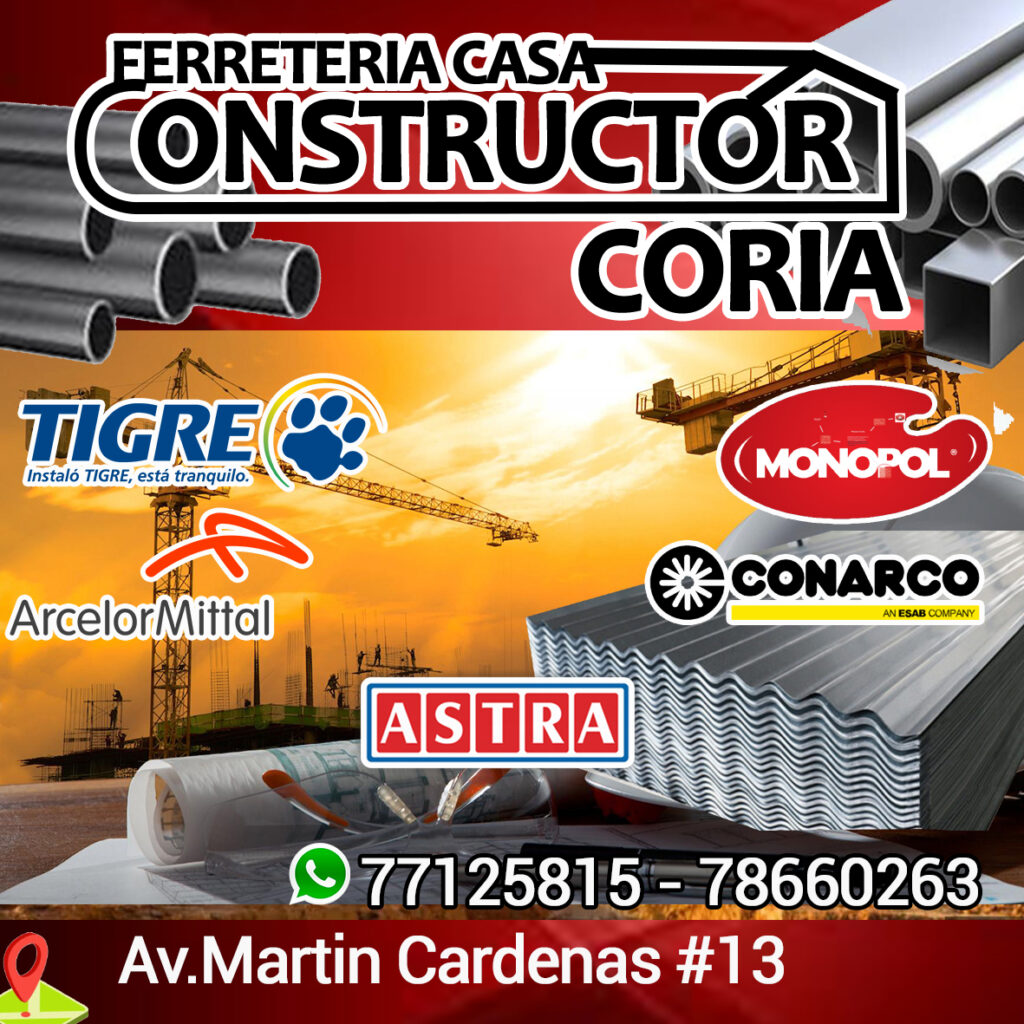 Ferreteria Casa Constructor Coria admin | junio 20, 2025 | CONSTRUCCION | No hay comentarios WhatsApp: 77125815 – 78660263 Direccion: Av. Martin Cardenas #13 Facebook0 Whatsapp Telegram Messenger TwitterComparte en tus redes Sociales Recuerda dejar tu Comentario Tags:Ferreteria, Sucre Empresas Relacionadas Comercial «F y J» No hay comentarios | Jun 28, 2025 ARTECO No hay comentarios | Jul 1, 2025 Comercial Carlos No hay comentarios | Jun 10, 2025 Equipos a Gas y Electricos JAMES GAS No hay comentarios | Jul 3, 2025